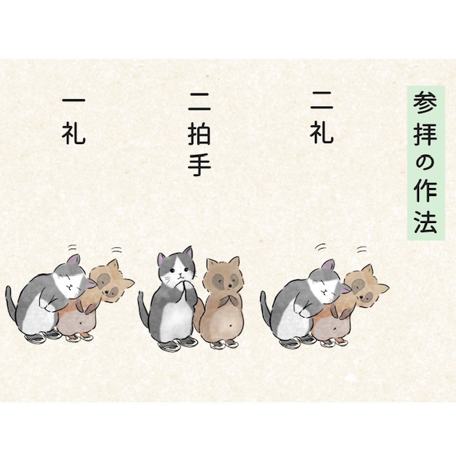 御神前でのおまいりの作法は「二礼・二拍手・一礼」です。